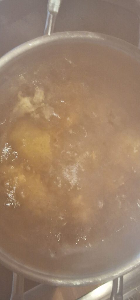 1. Kartoffeln und Eier kochen, schälen und würfeln.