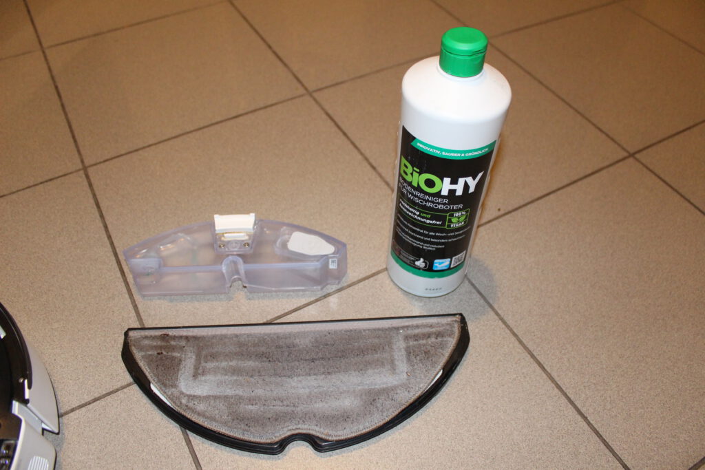 Ein Beispiel ist der BIOHY Reiniger: In Tests führte er dazu, dass sich die Schläuche verfärbten, sich Flocken im Wasser bildeten und in der Absaugstation sogar Schimmel entstand. Selbst die Nutzung von destilliertem Wasser konnte das Problem nicht verhindern. Der Servicetechniker rät daher dringend davon ab, nicht-herstellerzertifizierte Reinigungsmittel direkt in den Tank zu füllen. Besser ist es, die Reinigungslösung auf das Wischtuch zu geben. Hersteller-Reiniger sind speziell für die Nutzung im Tank konzipiert und daher sicherer für den Betrieb.